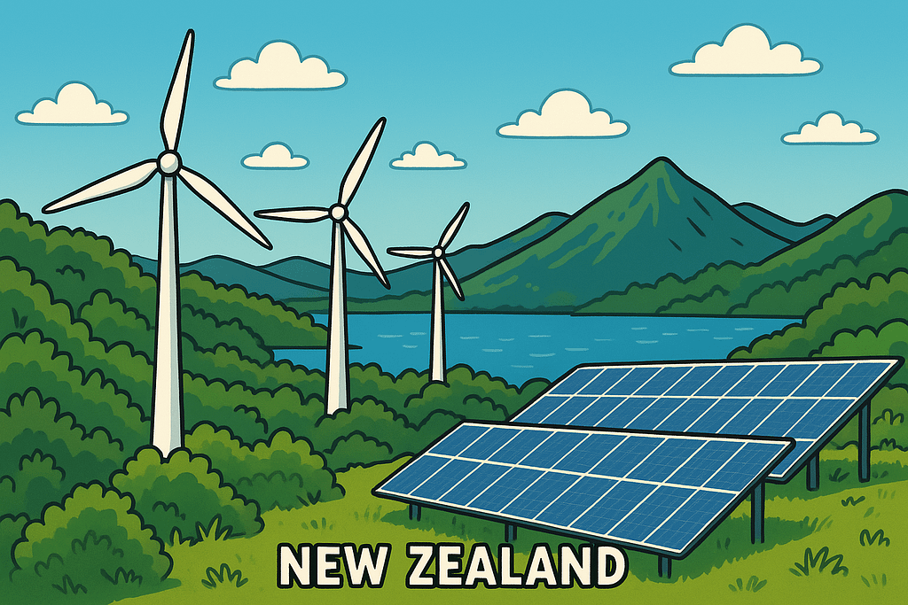 Lebih dari 80% energi listrik di New Zealand berasal dari sumber energi terbarukan, seperti tenaga air, angin, dan panas bumi. Pemerintah juga menerapkan regulasi ketat untuk melindungi alam, karena pariwisata dan budaya sangat bergantung pada kelestarian lingkungan.